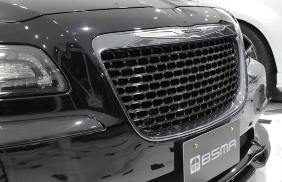 SRT8モデルの独特なメッシュグリッドはグロスブラックに仕上げられ精悍そのもの。 ブラックアウトしたヘッドライトとマッチして、ノーマルグリルのエレガントさを払拭し スポーツセダンらしさを強調します。