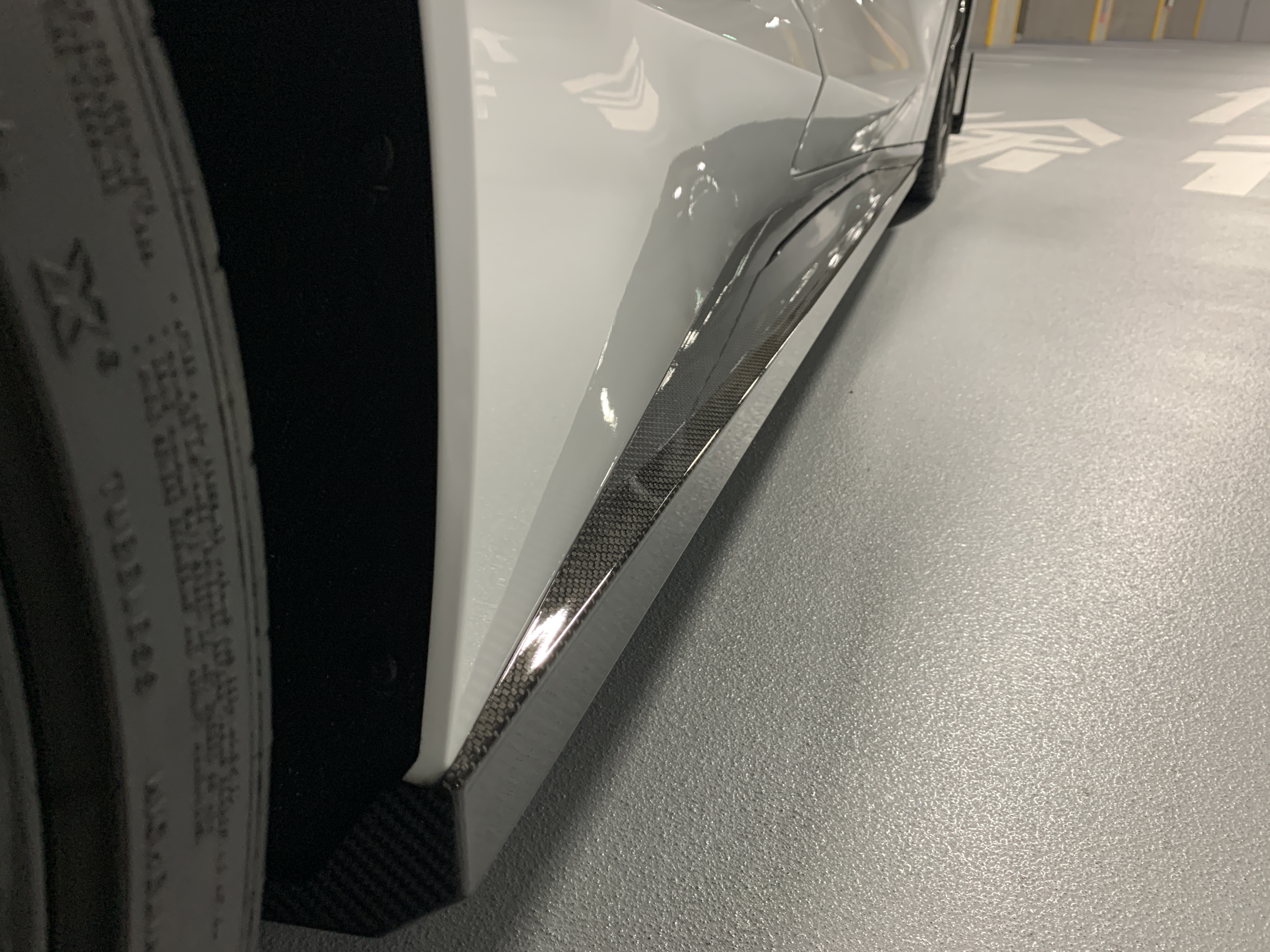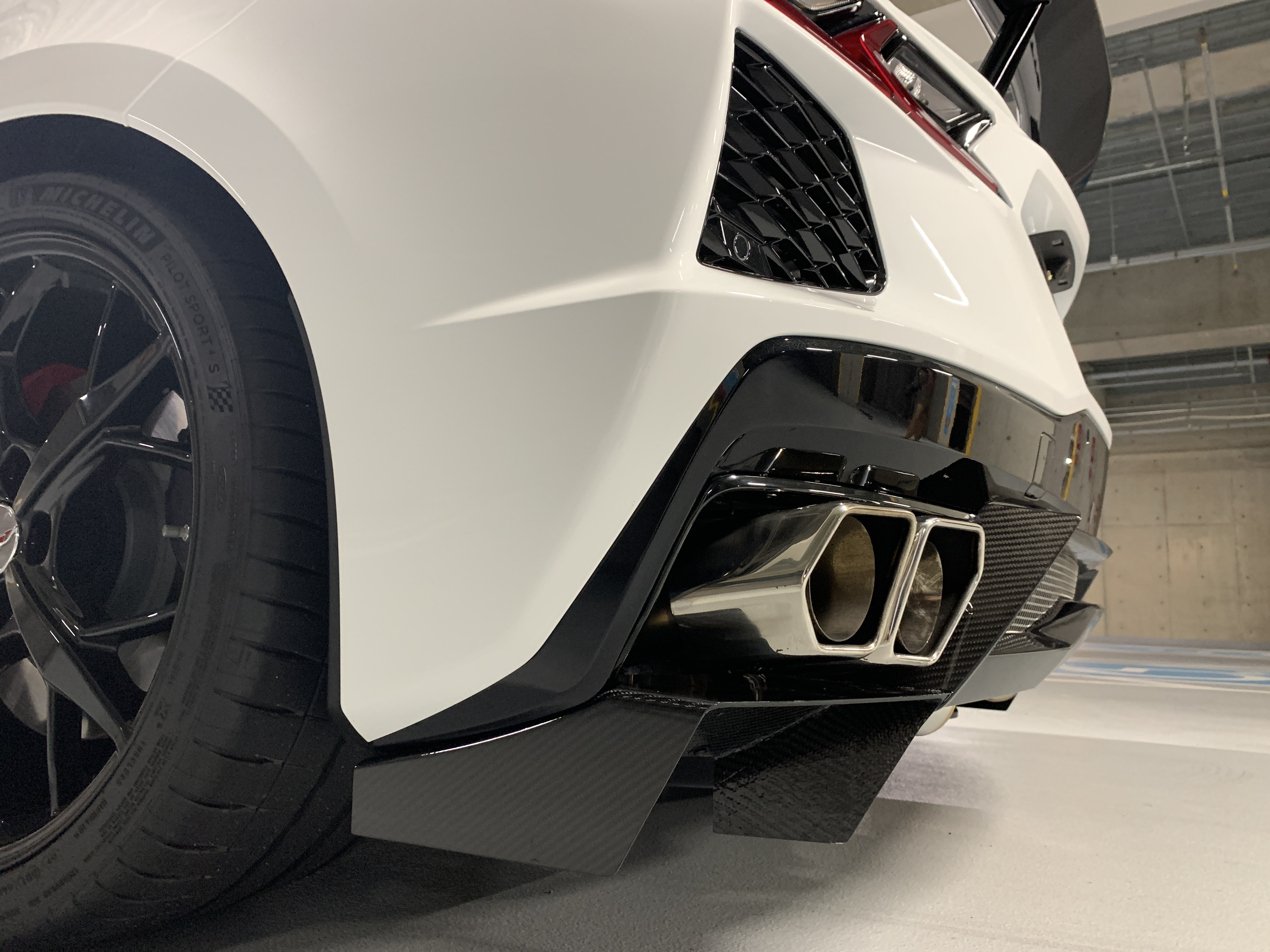 フロントチンスポイラーは可視部分の後部に、整流板が連なり、その全長は40cm(写真参照)にも及びます。