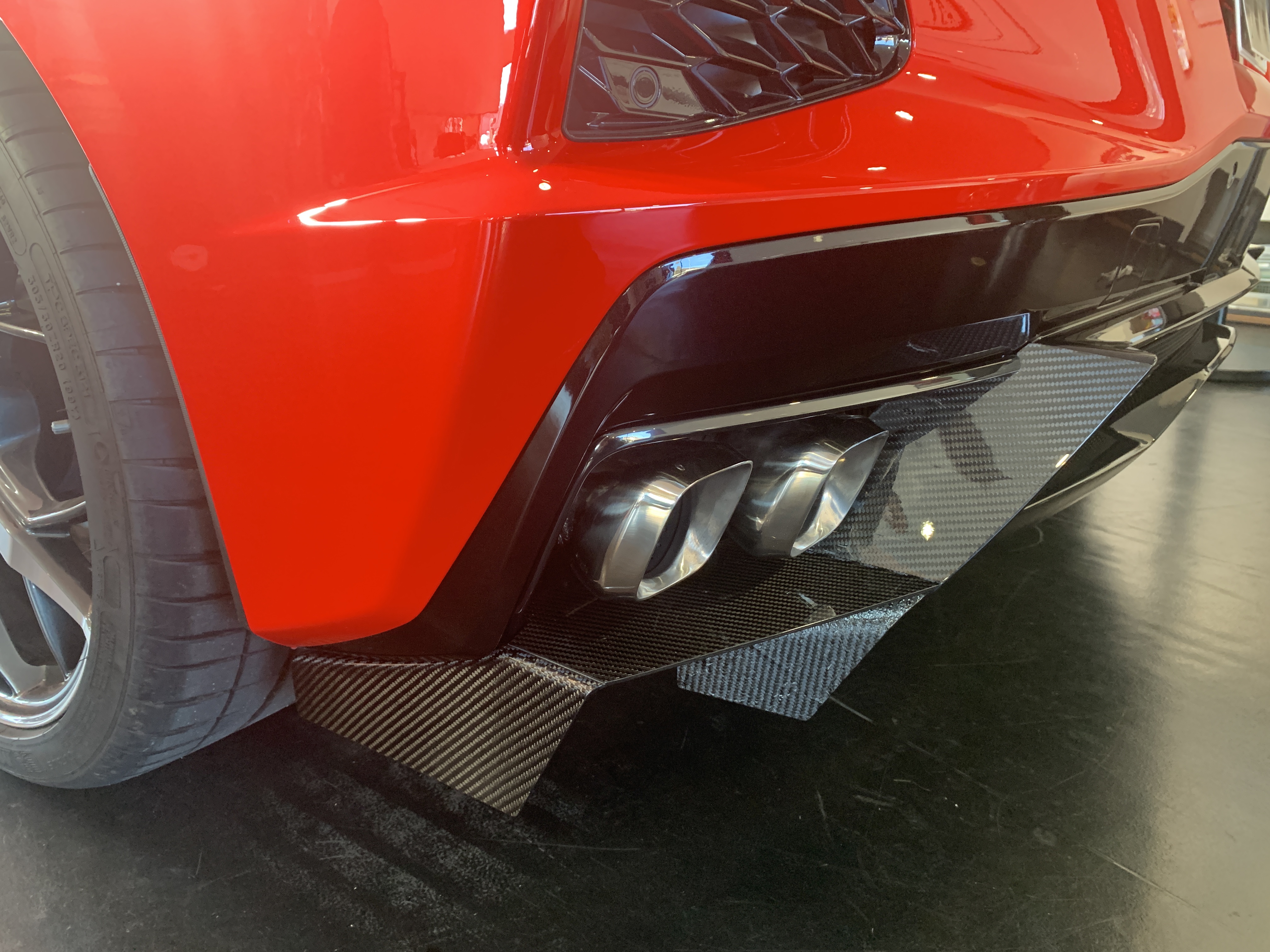 最も特徴的なデザインのリアスポイラーは、ディフューザーを大型化し、安全性を考慮したバックフォグを内蔵しております。