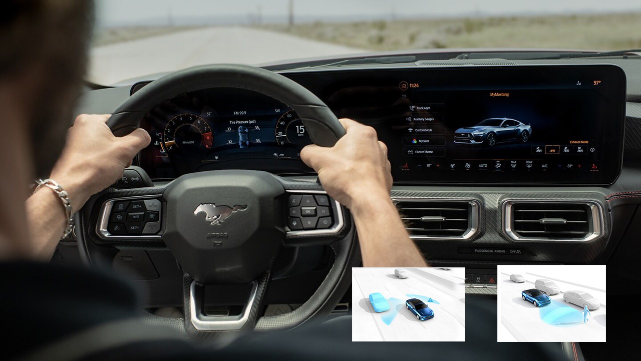 12.4インチ・デジタル・インストルメントクラスターは、自在なカスタマイズによりさまざまなアニメーションデザイン、ドライブモードに関連したビジュアルを表示することが可能となり、さらにオプションで13.2インチSYNC4センタースタックとシームレスにつながるよう設定することもできる。