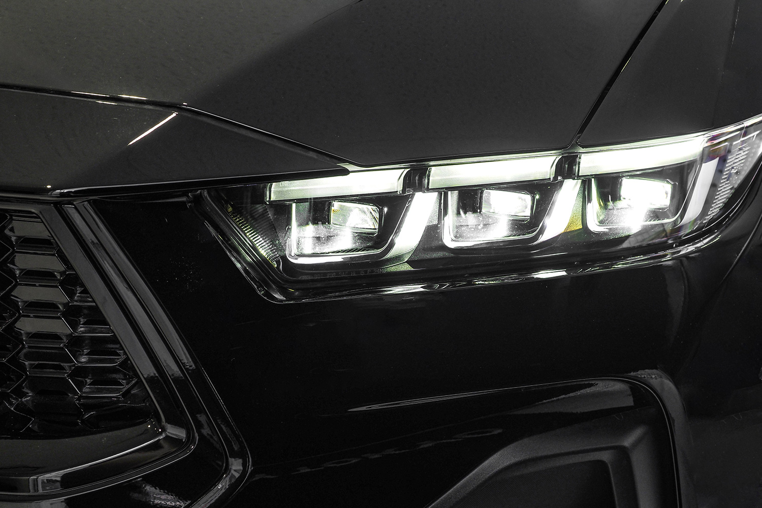 ジェット戦闘機からインスピレーションを得た没入型デジタルコックピットや電子ドリフトブレーキを採用し、マスタング史上最もパワフルな5.0リッターV型8気筒自然吸気ユニットが搭載される。