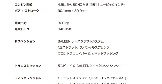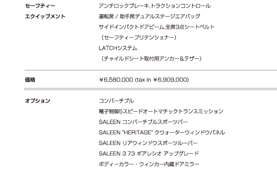 H281 3Valve Heritage Mustang ヘリテイジ マスタング クーペ コンバーチブル スペック