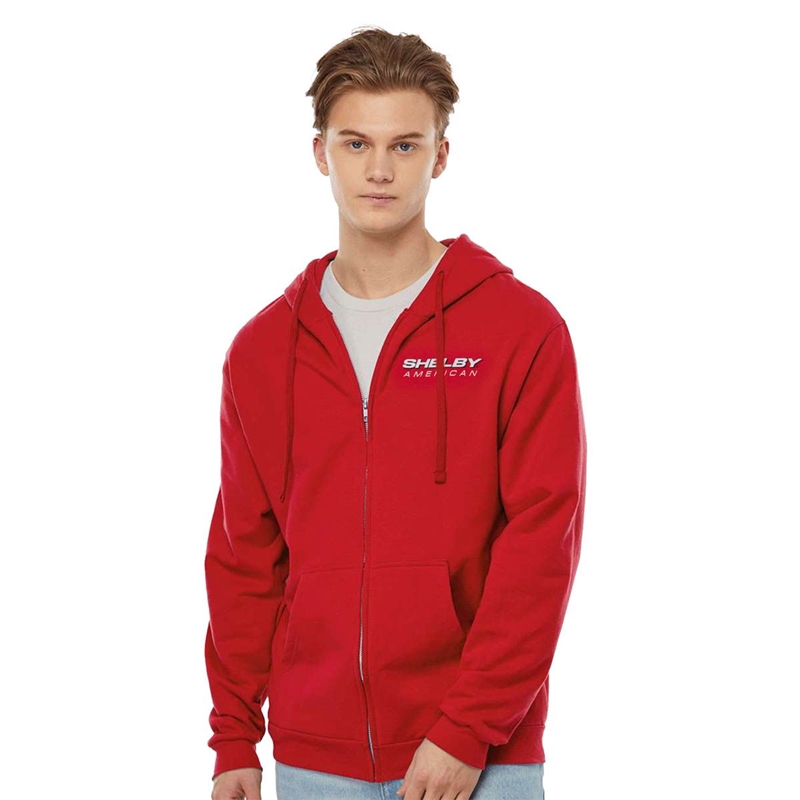 このインパクトのある赤いシェルビー フーディーを着て、暖かく人混みの中でも目立ちましょう。